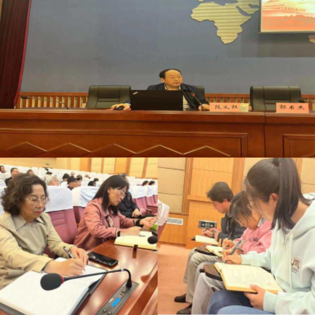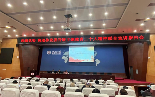 行为知之始,学为用之先。为深入开展学习贯彻习近平新时代中国特色社会主义思想主题教育,贯彻党的二十大精神,推动新时代党的创新理论入脑入心,教育引导党员干部在学思践悟、学以致用中坚定信仰、提高认识、增强能力,5月11日下午,教辅党委与离退休党委联合开展主题教育党的二十大精神宣讲报告会。校纪委委员、马克思主义学院党委书记段义权教授受邀以“按照‘五个牢牢把握’要求,学习贯彻落实好党的二十大精神”为主题作了专题辅导。